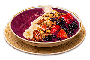 Nuestros bowls se preparan sobre una base de lechuga orgánica aderezada con vinagreta casera de limón amarillo y una porción de arroz integral (80 gr).
